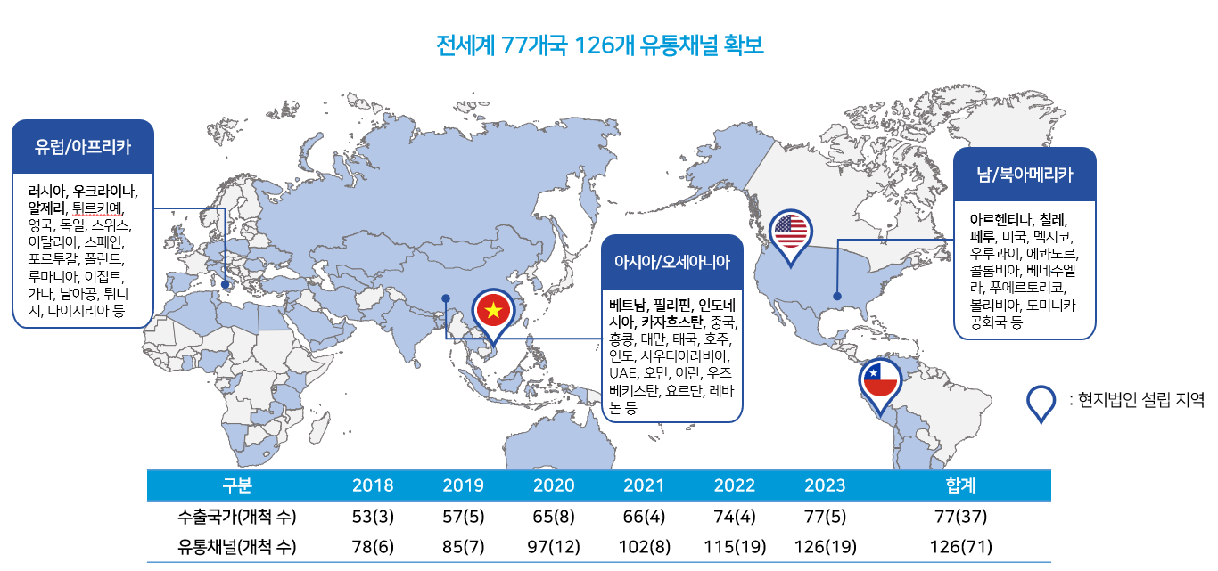 전세계 80여개국에 130여 채널을 보유하고, 해외 매출에 주력하고 있습니다.