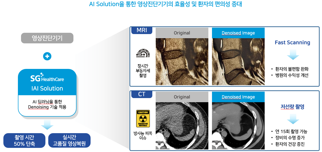 이러한 기술은, MRI 촬영 시 환자에게는 촬영시간의 단축으로 편의성을 증진시키고, 병원에게는 촬영건수의 증가로 수익성 개선에 도움을 줄 수 있으며,